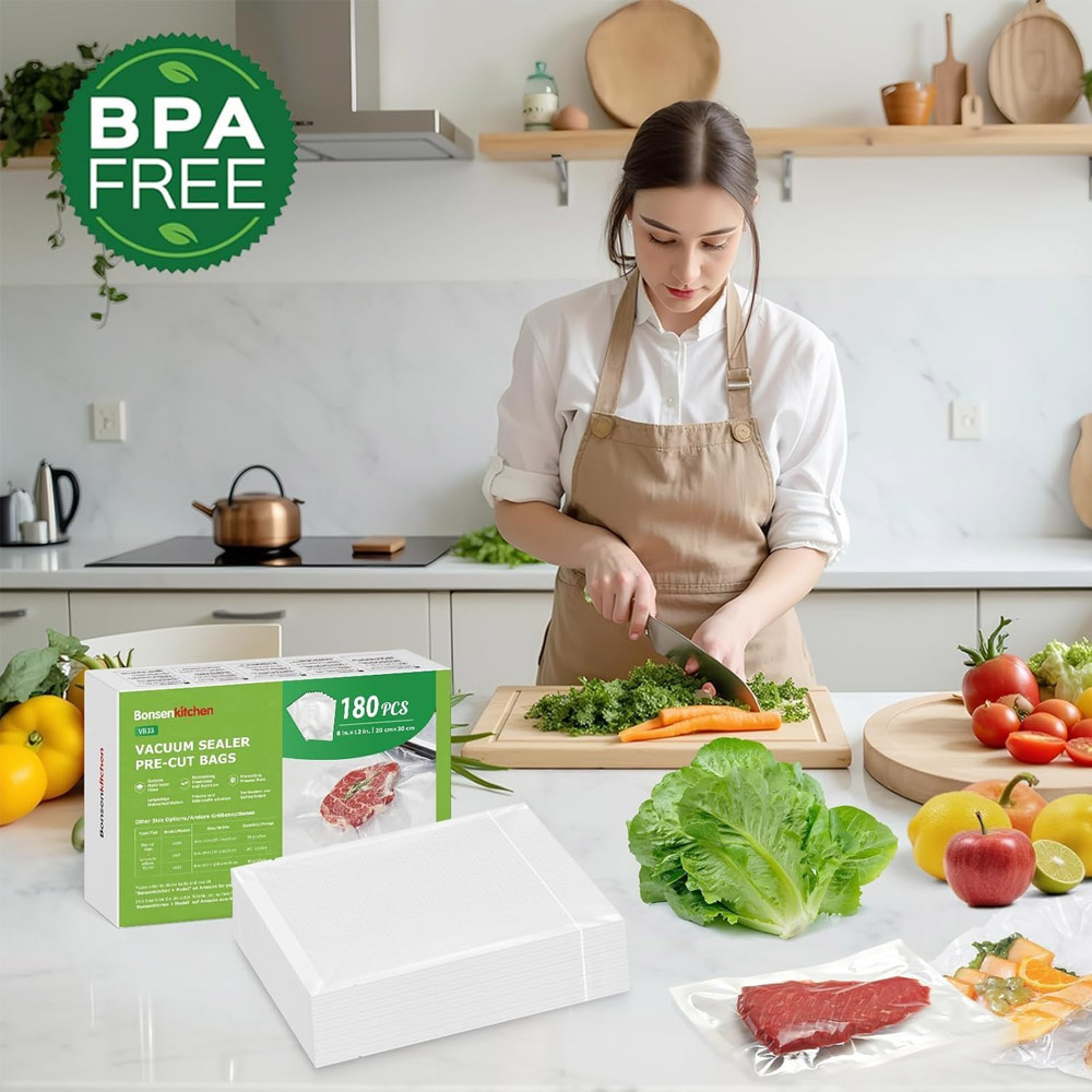 Bonsenkitchen – Σακούλες Vacuum 20x30cm (180τμχ) | Χωρίς BPA, Πάχους Επαγγελματικής Ποιότητας για Συντήρηση & Sous Vide | Μοντέλο VB3205
