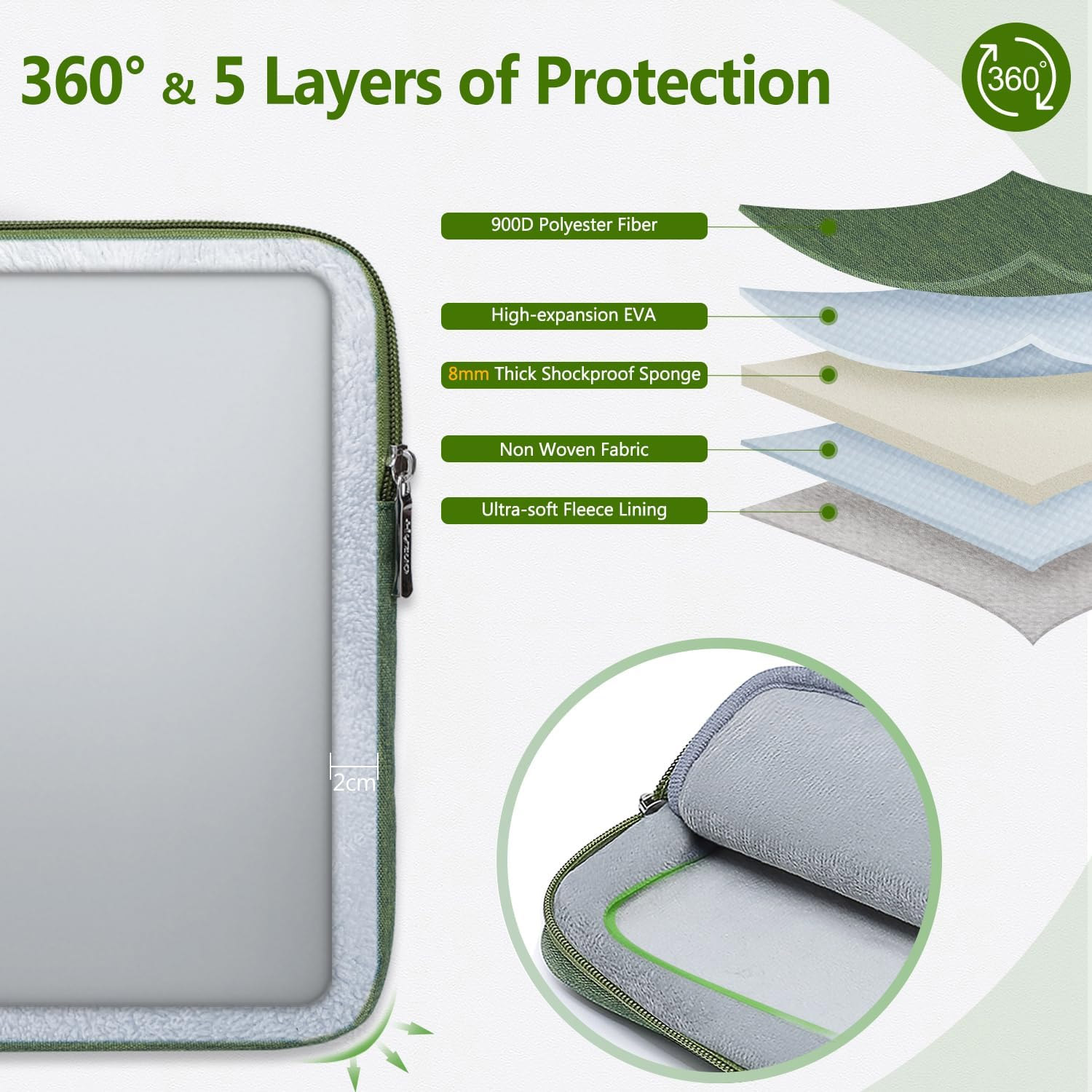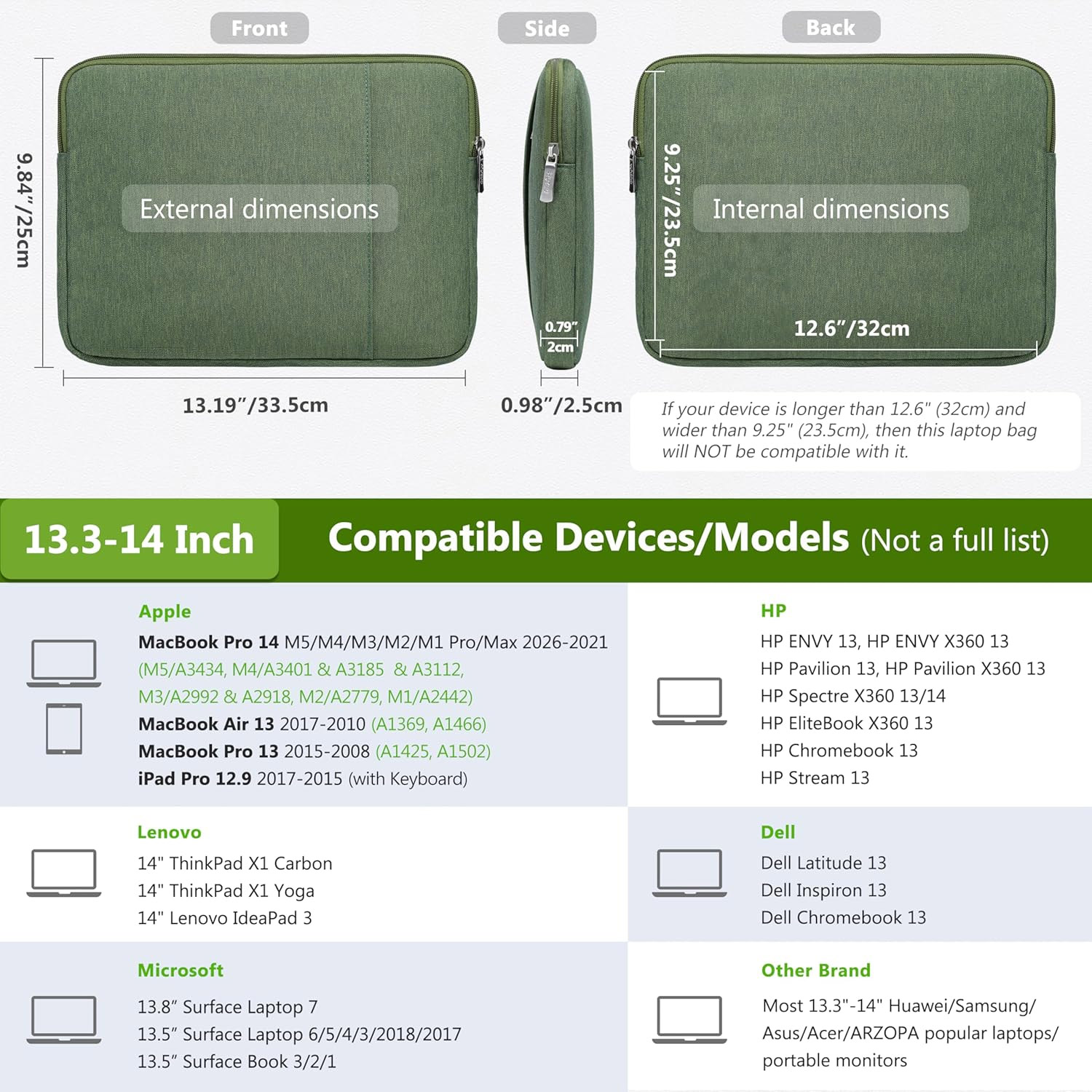 HYZUO – Σετ Θήκης Laptop 13.3″–14″, Χρώμα Grass Green | Συμβατή με MacBook Pro 14 (M4/M3/M2/M1), MacBook Air/Pro 13.3″, Surface Book/Laptop 13.5″/13.8″, HP / Dell / Lenovo / Asus / Acer