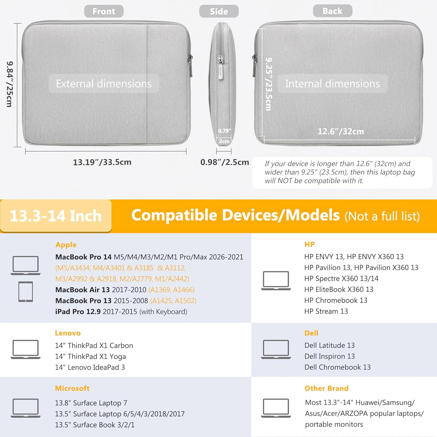 HYZUO – Σετ Θήκης Laptop 13.3″–14″, Χρώμα Light Grey | Συμβατή με MacBook Pro 14 (M4/M3/M2/M1), MacBook Air/Pro 13.3″, Surface Book/Laptop 13.5″/13.8″, HP / Dell / Lenovo / Asus / Acer