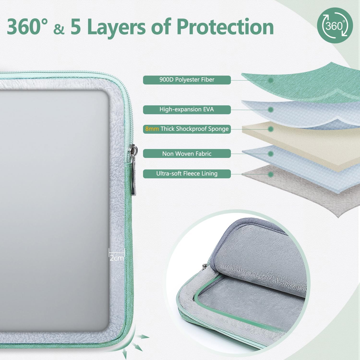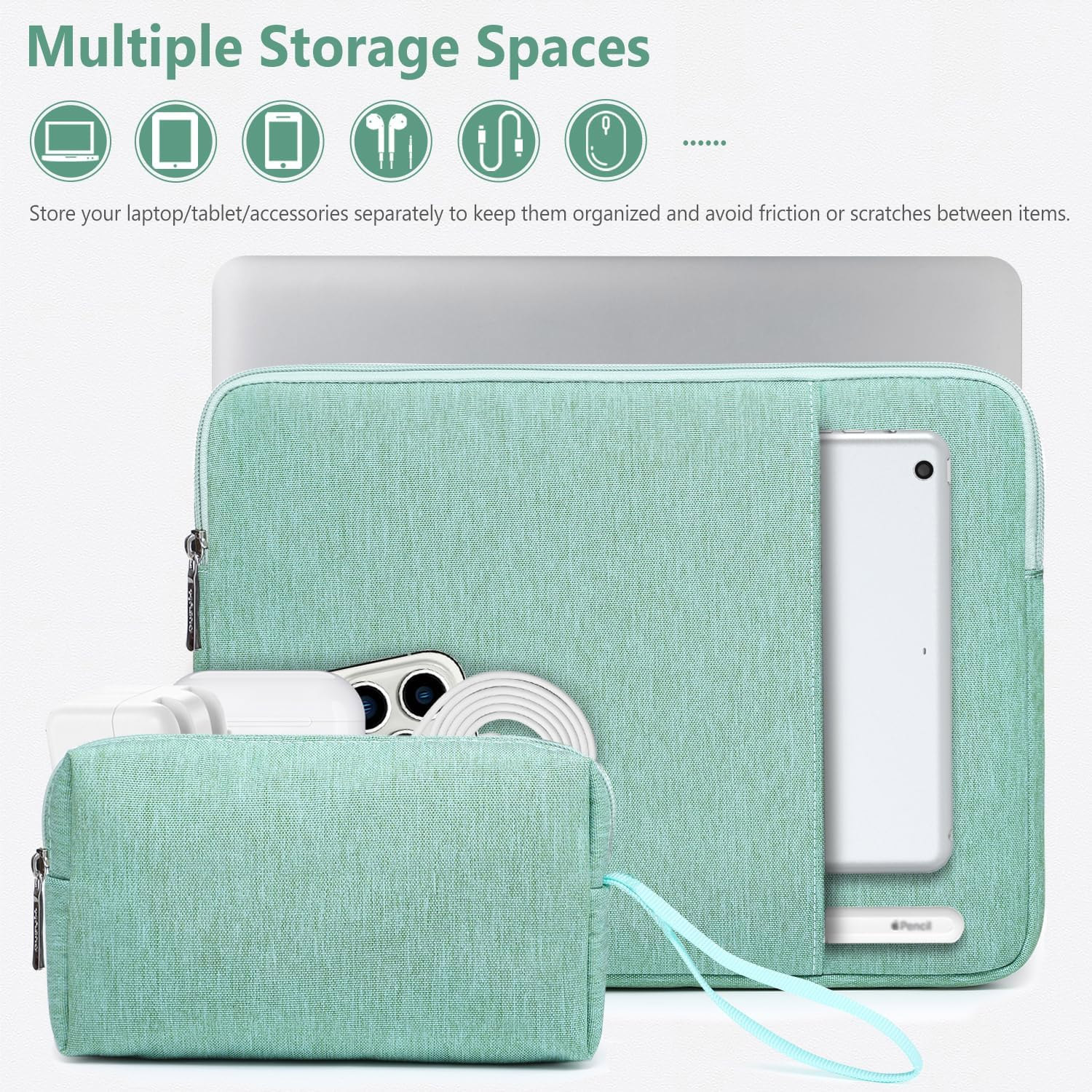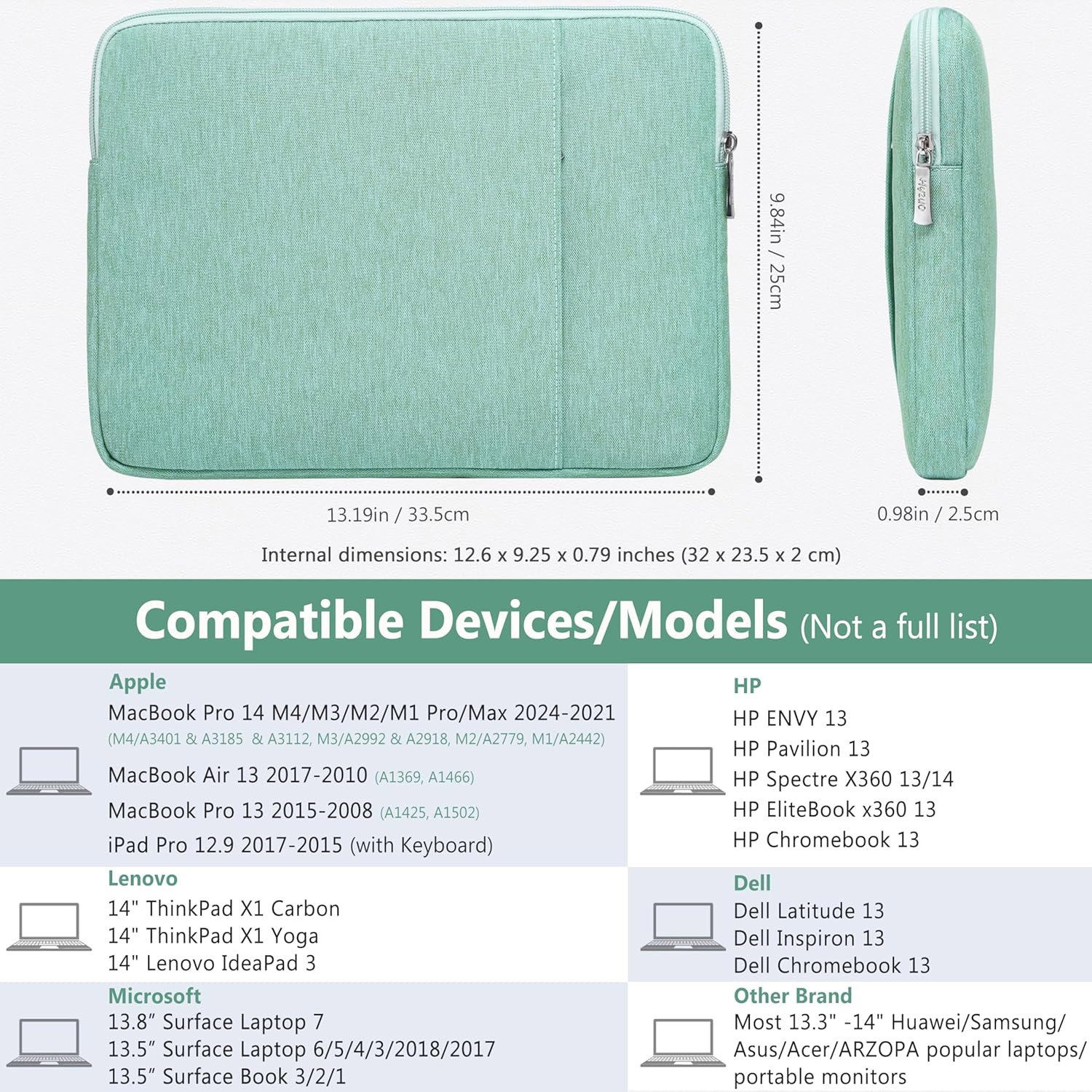 HYZUO – Σετ Θήκης Laptop 13.3″–14″, Χρώμα Mint Green | Συμβατή με MacBook Pro 14 (M4/M3/M2/M1), MacBook Air/Pro 13.3″, Surface Book/Laptop 13.5″/13.8″, HP / Dell / Lenovo / Asus / Acer