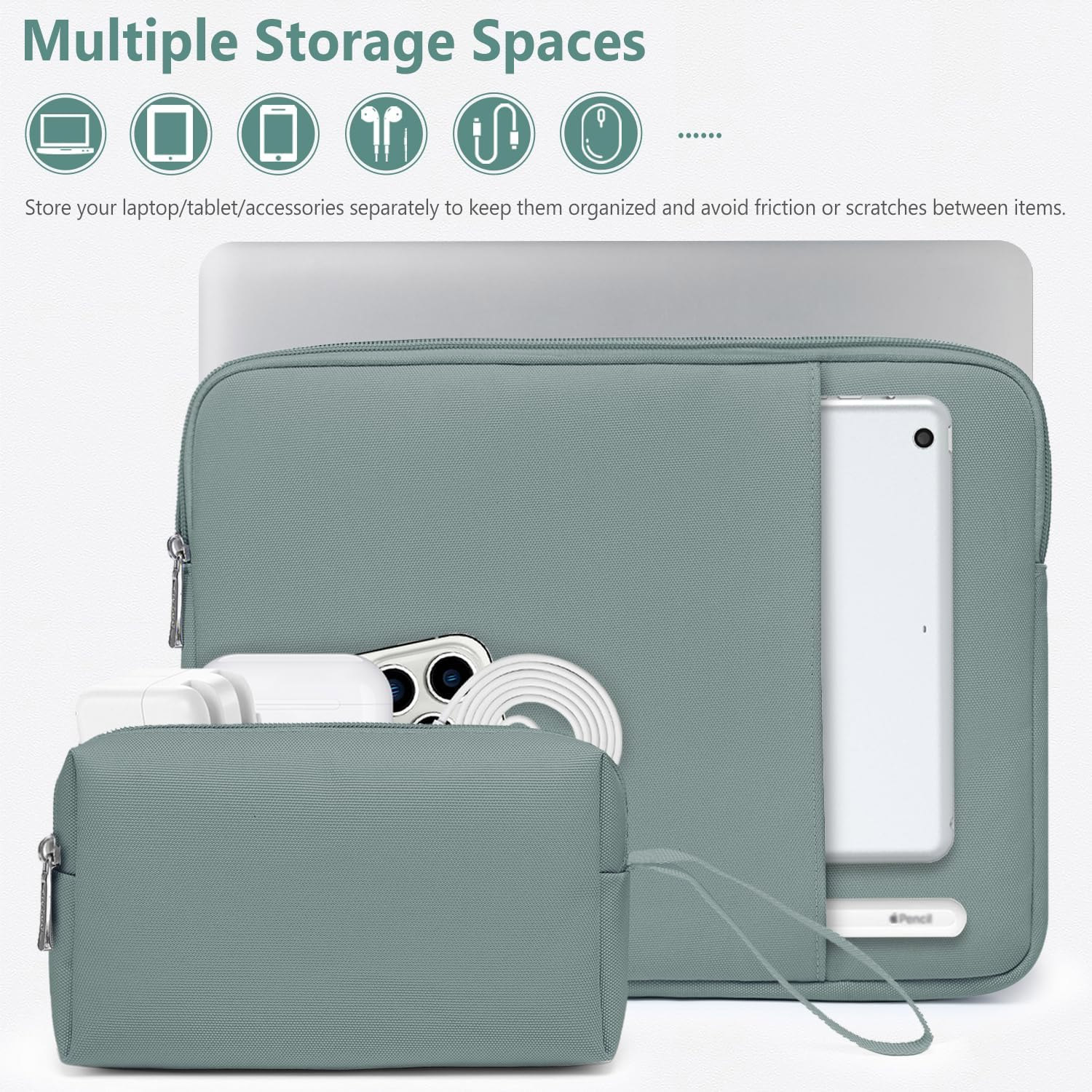 HYZUO – Σετ Θήκης Laptop 13.3″–14″, Χρώμα Ash Blue | Συμβατή με MacBook Pro 14 (M4/M3/M2/M1), MacBook Air/Pro 13.3″, Surface Book/Laptop 13.5″/13.8″, HP / Dell / Lenovo / Asus / Acer