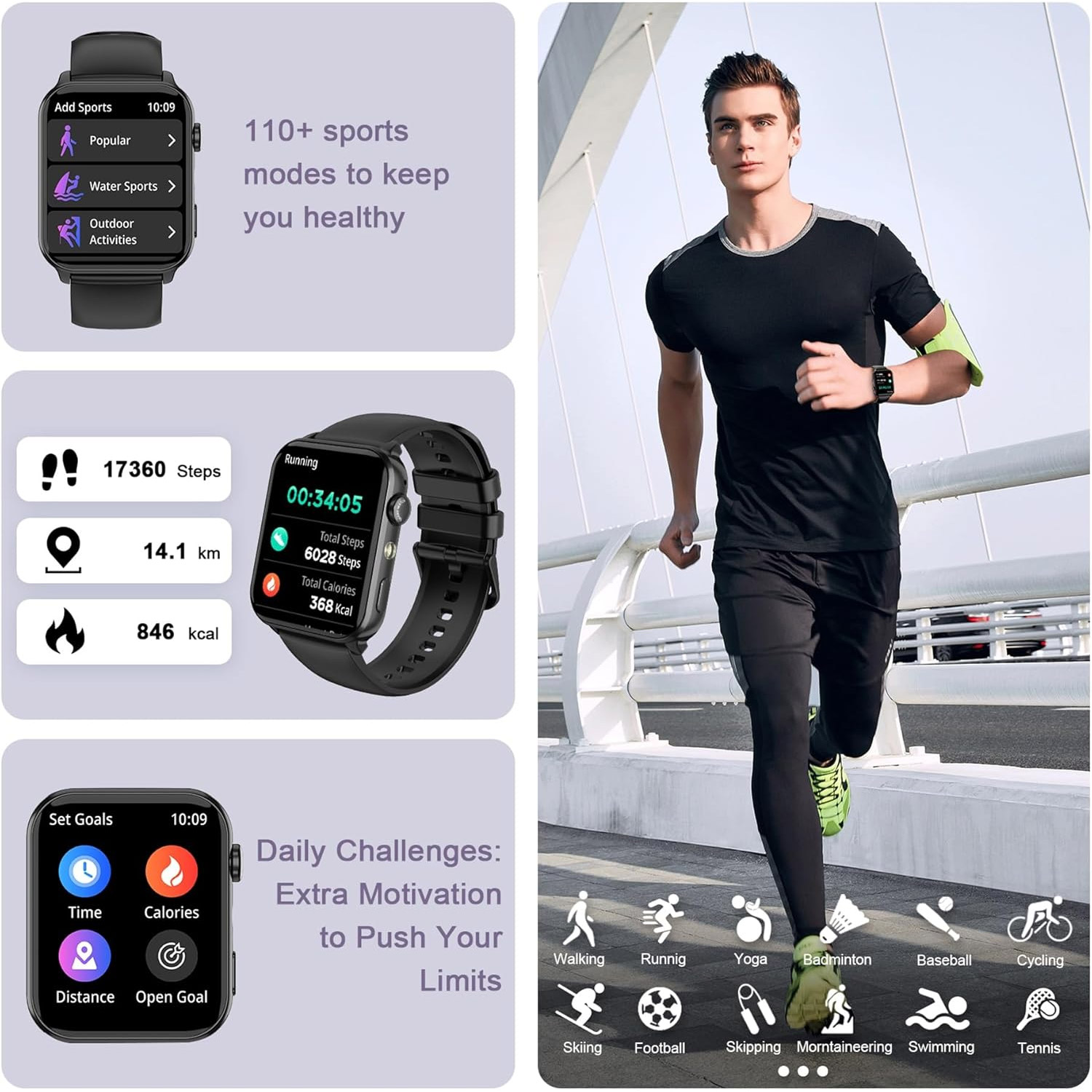 Υποστηρίζει πάνω από 100 αθλήματα, όπως τρέξιμο, ποδηλασία, γιόγκα, πεζοπορία κ.ά.