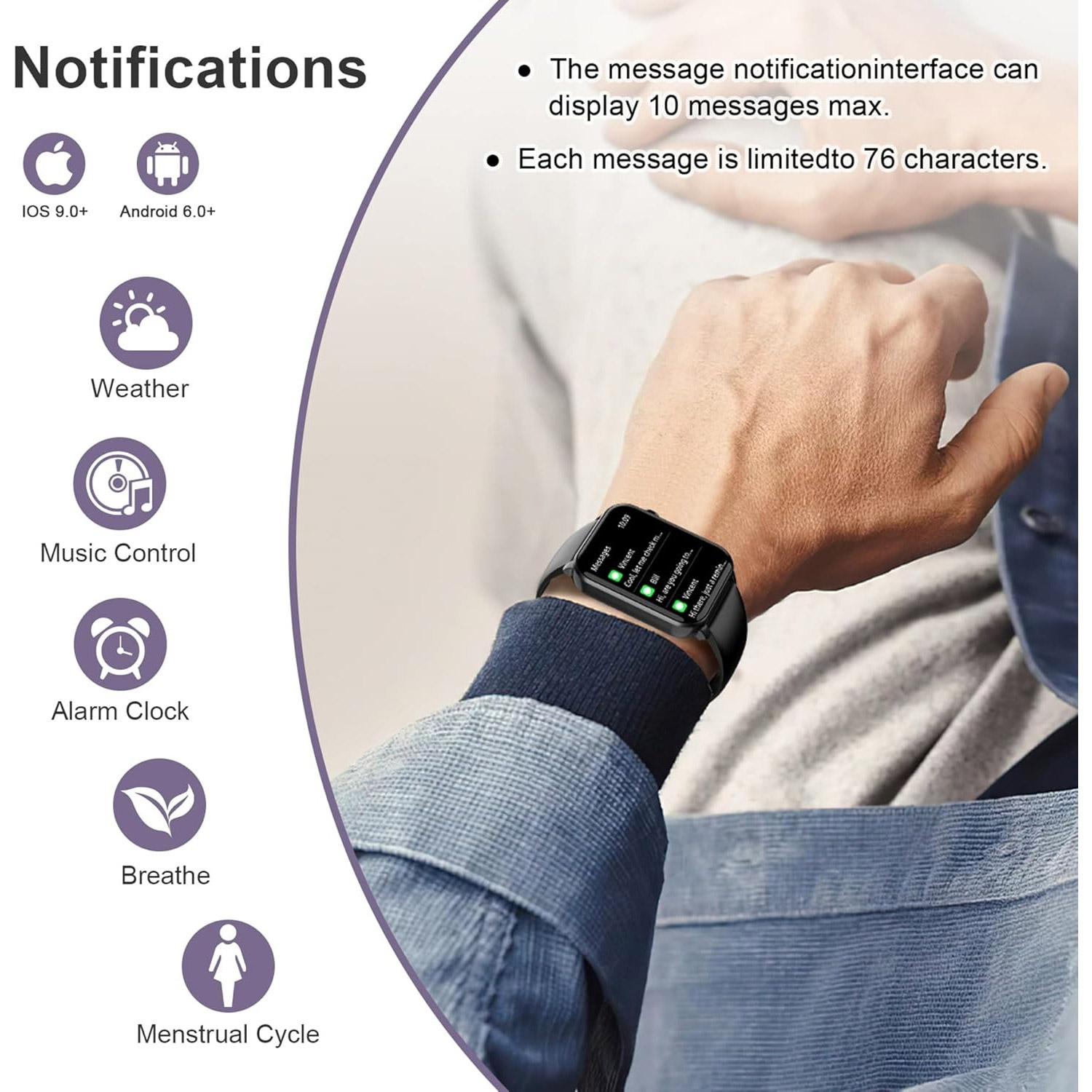 Επιπλέον λειτουργίες: έλεγχος μουσικής, τηλεχειρισμός κάμερας, ξυπνητήρι, υπενθύμιση κίνησης, αριθμομηχανή, παιχνίδια, παρακολούθηση γυναικείου κύκλου.