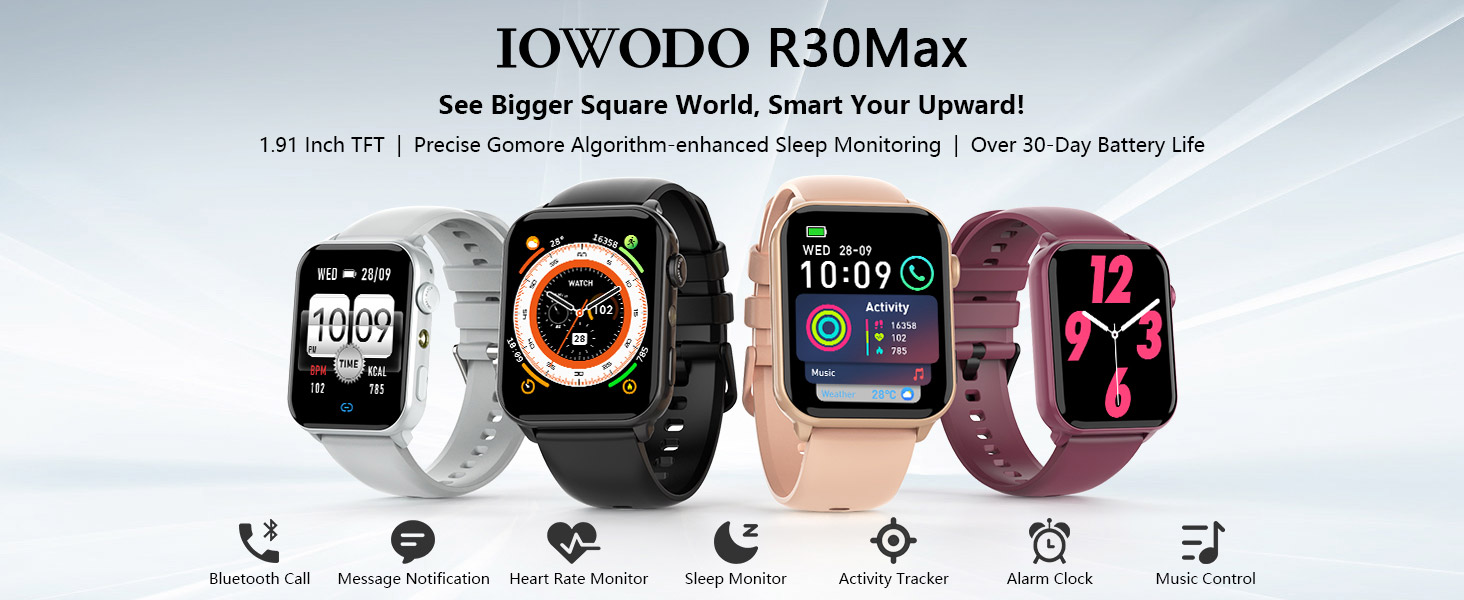IOWODO R30PRO – Smartwatch 1.85″ για Γυναίκες & Άνδρες Black | Έξυπνο Ρολόι με Bluetooth Κλήσεις, Βηματομετρητή, Καρδιακούς Παλμούς, Παρακολούθηση Ύπνου & Fitness | Αδιάβροχο Αθλητικό Ρολόι | Συμβατό με iOS & Android