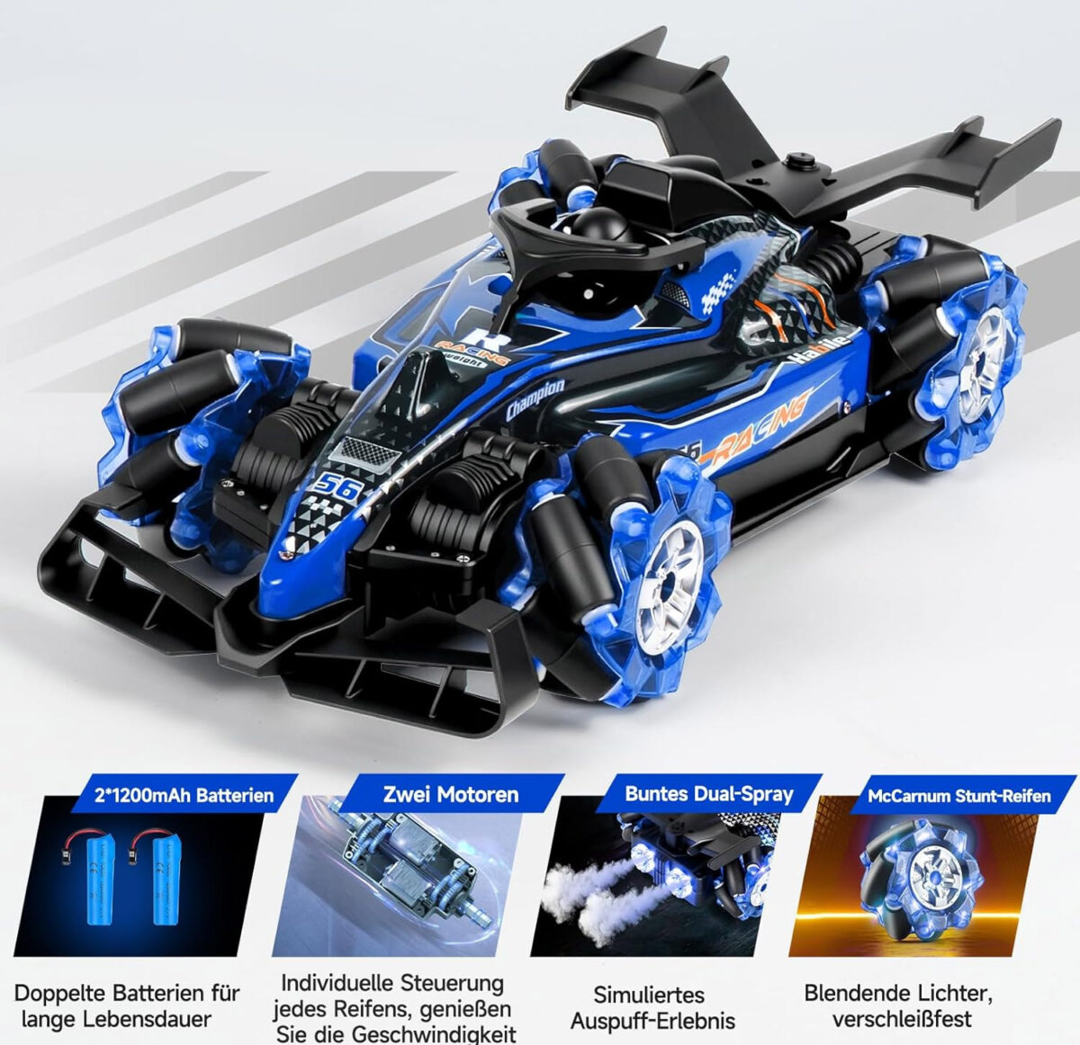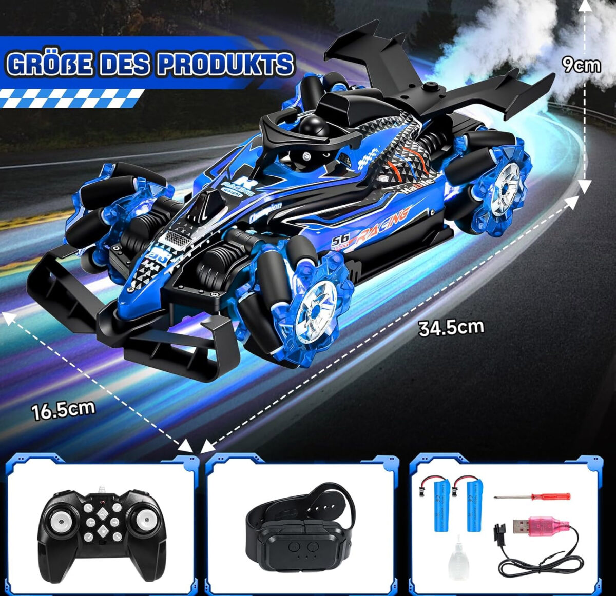 Joellfuner | Τηλεκατευθυνόμενο Αυτοκίνητο με Χειρισμό Χεριού | 14 Καναλιών Dual Jet, 25 km/h, με Φώτα & Μουσική | Ιδανικό Δώρο για Παιδιά & Ενήλικες (Blue)