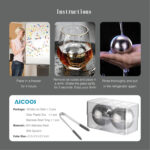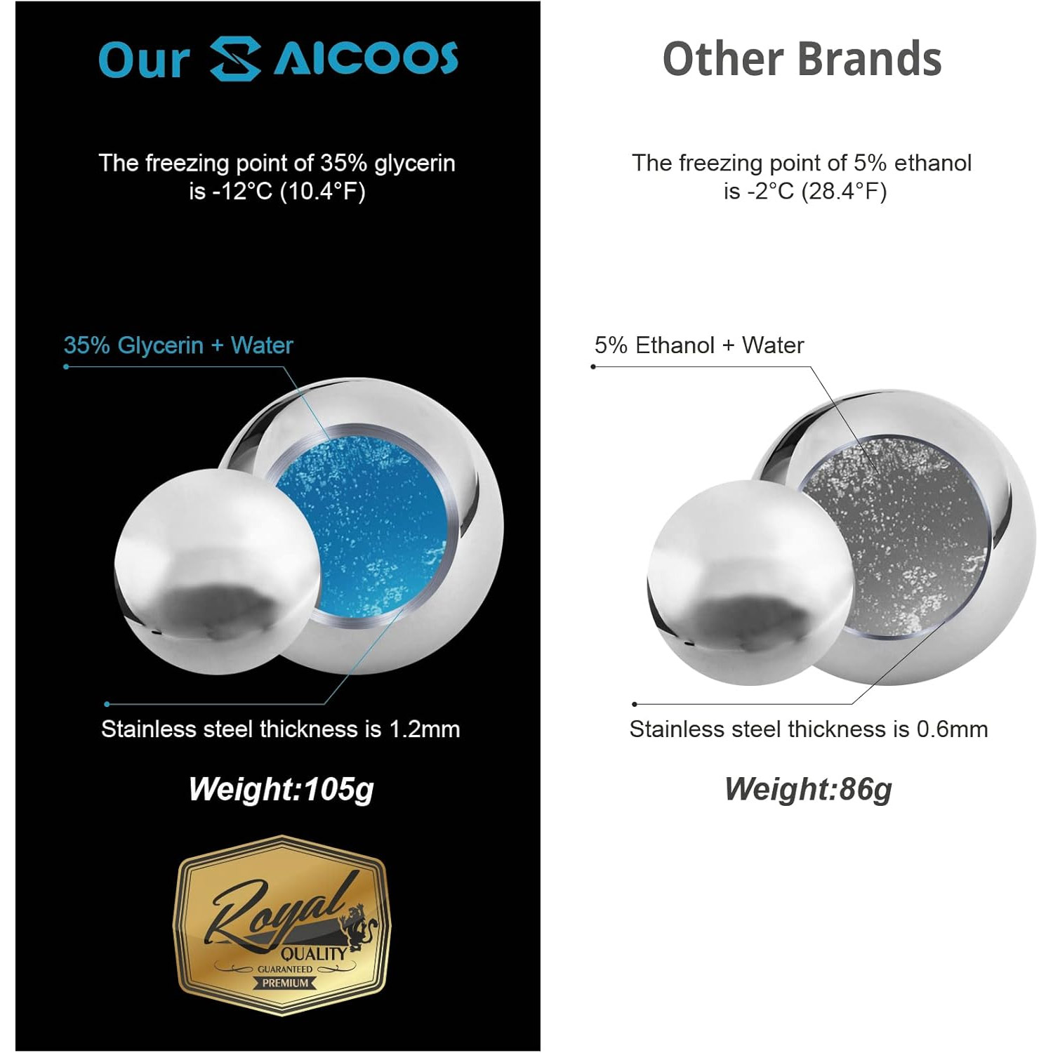SAICOOS – Επαναχρησιμοποιούμενες Σφαίρες Πάγου (Σετ 2 τεμ.) | Ανοξείδωτες Σφαίρες Whisky με Τεχνολογία Ταχείας Ψύξης | Ιδανικές για Whisky, Vodka, Κρασί & Ποτά (55 mm)